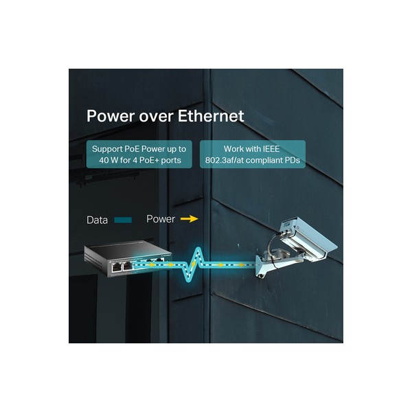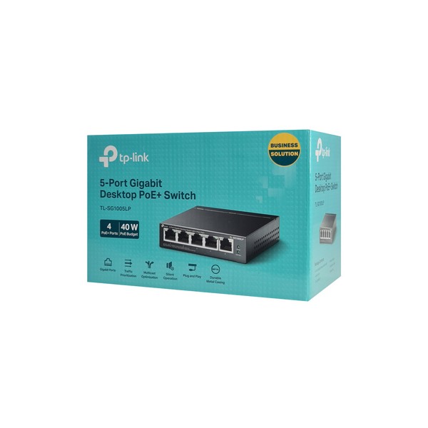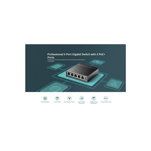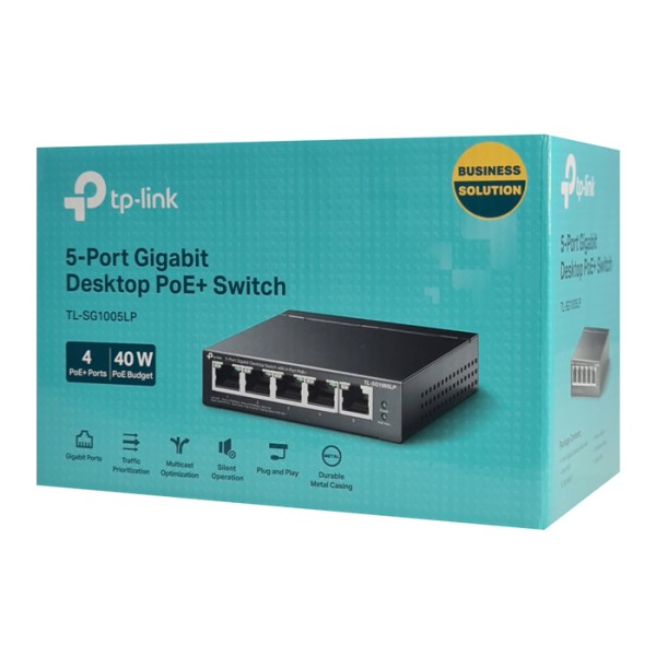 Το TL-SG1005LP είναι ένα switch επαγγελματικών προδιαγραφών που εξοπλίζεται με 5 θύρες δικτύου με ταχύτητες 10/100/1000Mbps. Από τις θύρες δικτύου που εξοπλίζεται, οι 4 υποστηρίζουν PoE+ για την μεταφορά δεδομένων και ισχύς με ένα μόνο καλώδιο.