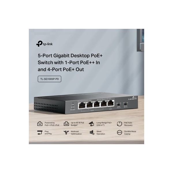 TP-LINK desktop switch TL-SG1005P-PD, 5x Gigabit θύρες, PoE+, UN/1.0