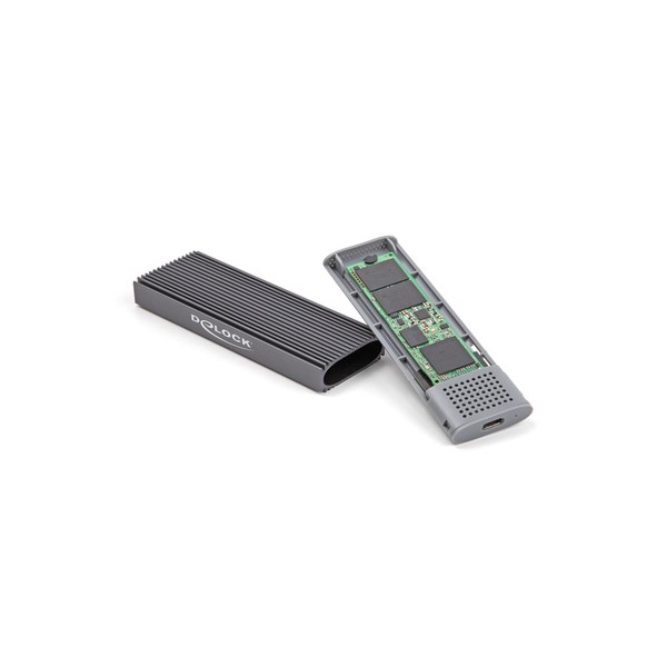 Αυτή η θήκη της Delock μπορεί να χρησιμοποιηθεί για την σύνδεση ενός M.2 PCIe NVMe SSD ή SATA M.2 SSD με έναν επιτραπέζιο ή φορητό υπολογιστή μέσω θύρας USB-C.