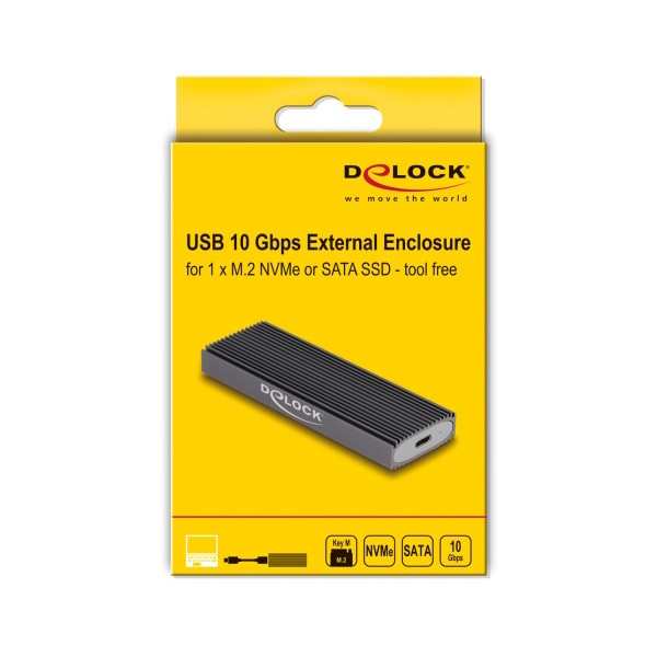 DELOCK θήκη για M.2 NVMe PCIe/SATA SSD 42019, tool free, 10Gbps, μαύρη