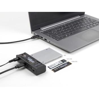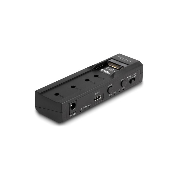 Αυτό το docking station της Delock επιτρέπει την σύνδεση ενός M.2 NVMe/SATA SSD (σε 2280, 2260, 2242 and 2230 format) ή ενός 2.5"/3.5" SSD/HDD σε ένα PC ή laptop μέσω θύρας USB ή USB-C (συμπεριλαμβάνονται καλώδια).
