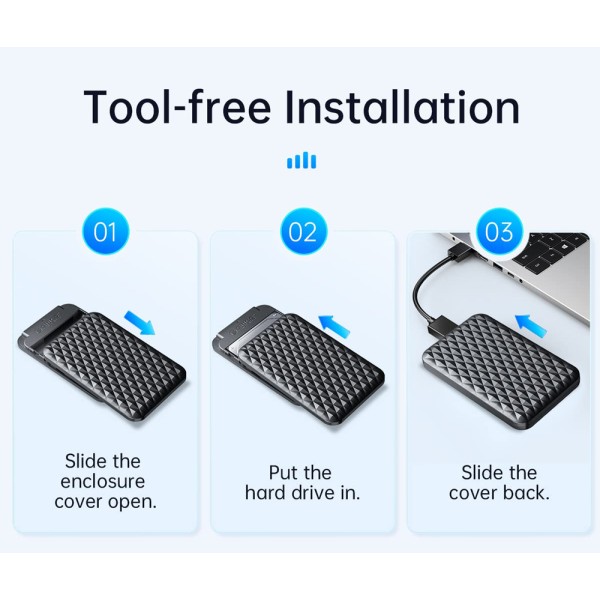 Η θήκη της ORICO επιτρέπει την σύνδεση ενός 2.5" SATA HDD ή SSD με έναν επιτραπέζιο ή φορητό υπολογιστή μέσω θύρας USB.