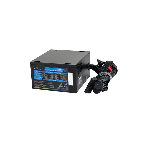 POWERTECH τροφοδοτικό PC PT-1311, 80PLUS Bronze, 700W, ATX, 120mm RGB Fan, Semi Modular
