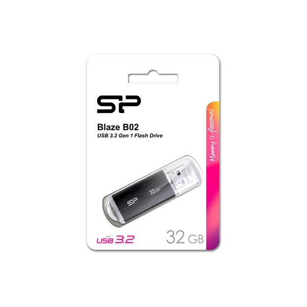 SILICON POWER USB Flash Drive Blaze B02, 32GB, USB 3.2, μαύρο