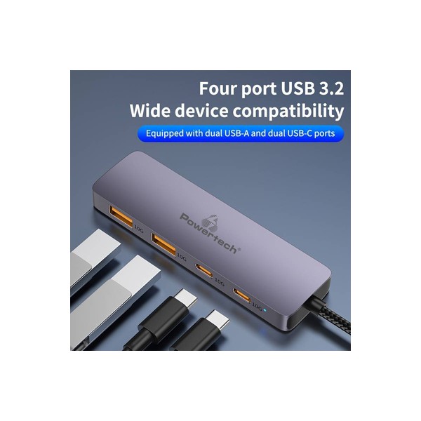 Το USB hub της Powertech επεκτείνει τις θύρες του desktop ή laptop σας με 2x USB και 2x USB-C θύρες. Συνδέεται μέσω θύρας USB-C επιτρέποντας σας να συνδέσετε οποιαδήποτε συσκευή διαθέτει έξοδο USB, όπως σκληρούς δίσκους, ποντίκι, πληκτρολόγιο, web κάμερα, card reader κ.α.