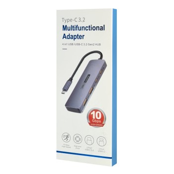 POWERTECH USB hub CAB-UC082, 4x θυρών, 10Gbps, USB-C σύνδεση, γκρι