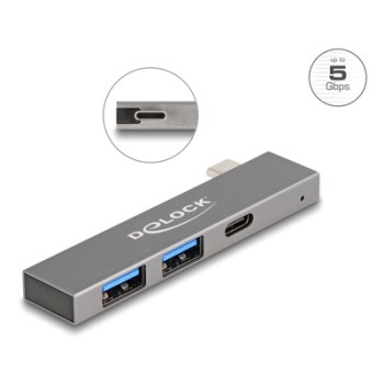 DELOCK USB hub 64275, 3x θυρών, 5Gbps, USB-C σύνδεση, γκρι