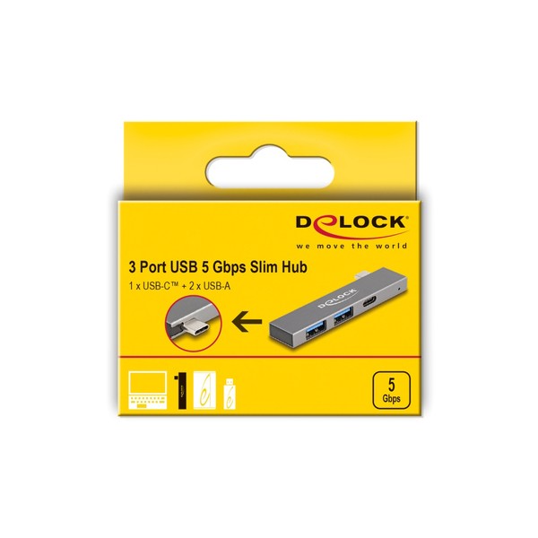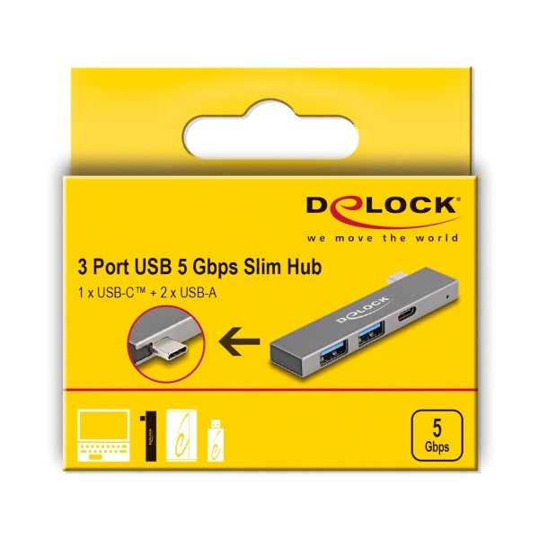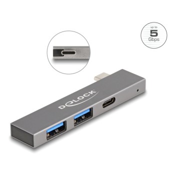 Αυτό το hub της Delock μπορεί να συνδεθεί με το laptop ή το desktop σας μέσω θύρας USB-C και να επεκτείνει τις θύρες του με 1x USB-C και 2x USB θύρες. Διαφορετικές συσκευές USB, όπως εξωτερικοί σκληροί δίσκοι, card readers κ.λπ. μπορούν να συνδεθούν μέσω του hub.