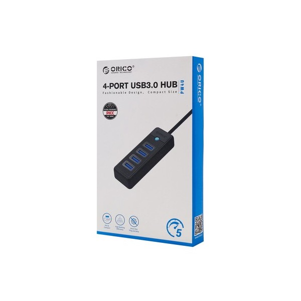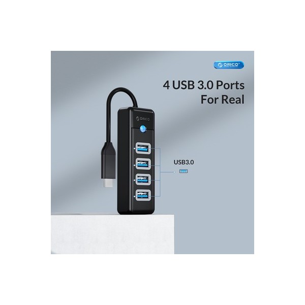 ORICO USB hub PW4U-C3, 4x θυρών, USB 3.0, 5Gbps, USB-C σύνδεση, μαύρο