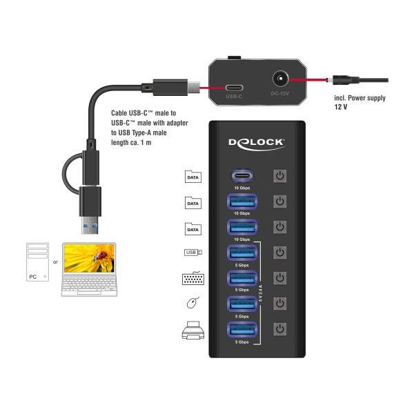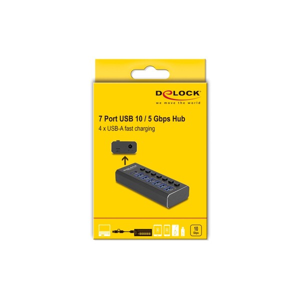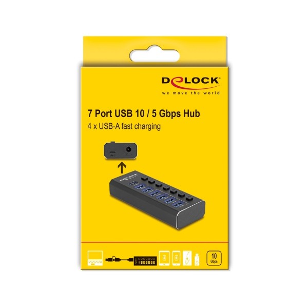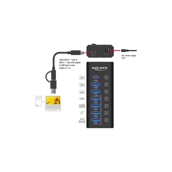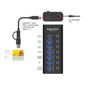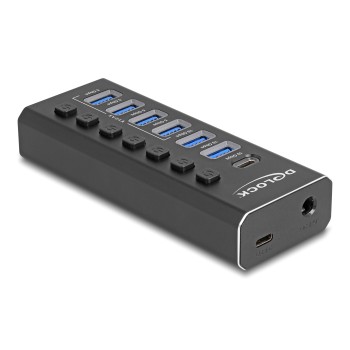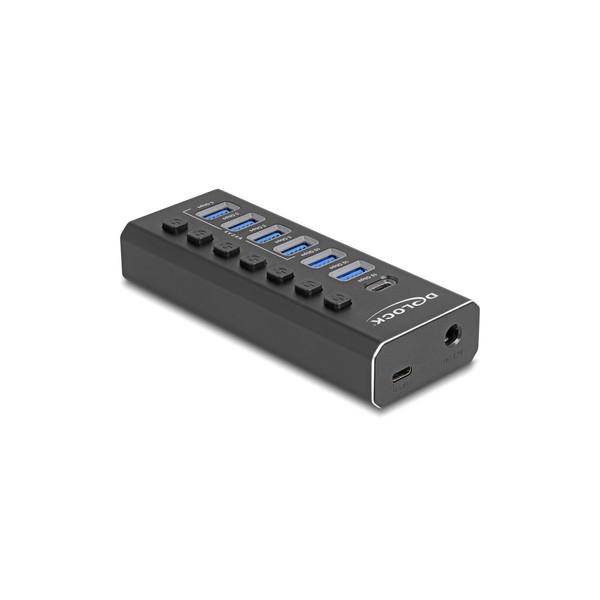 DELOCK USB hub 64326 με διακόπτες, 7x θυρών, 10Gbps, USB/USB-C σύνδεση, μαύρο