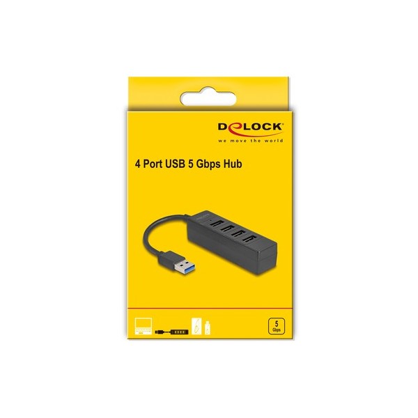 DELOCK USB hub 64350, 4x θυρών, USB 3.0, 5Gbps, USB σύνδεση, μαύρος