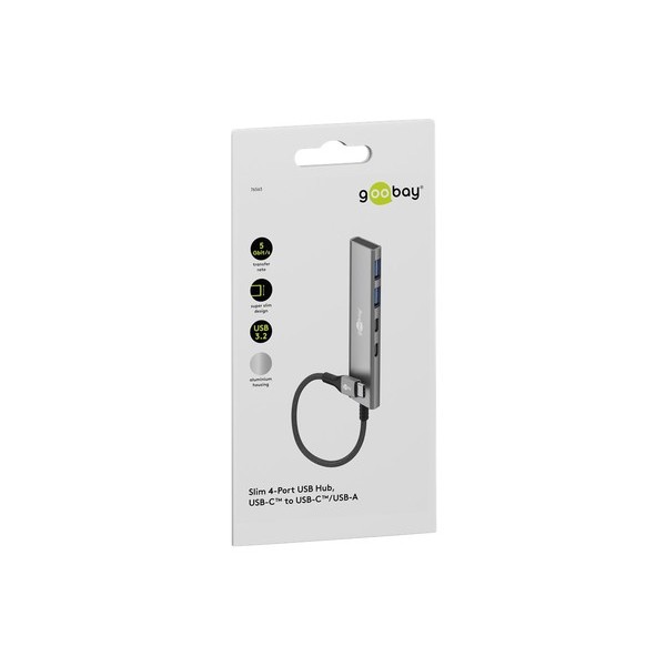GOOBAY USB hub 76563, 4x θυρών, USB 3.2, 5Gbps, USB-C σύνδεση, γκρι