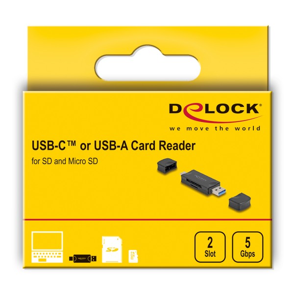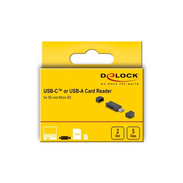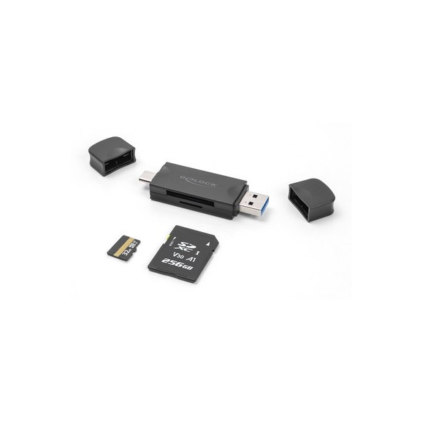 DELOCK card reader 91020 για SD & micro SD, USB/USB-C σύνδεση, 5Gbps, μαύρο